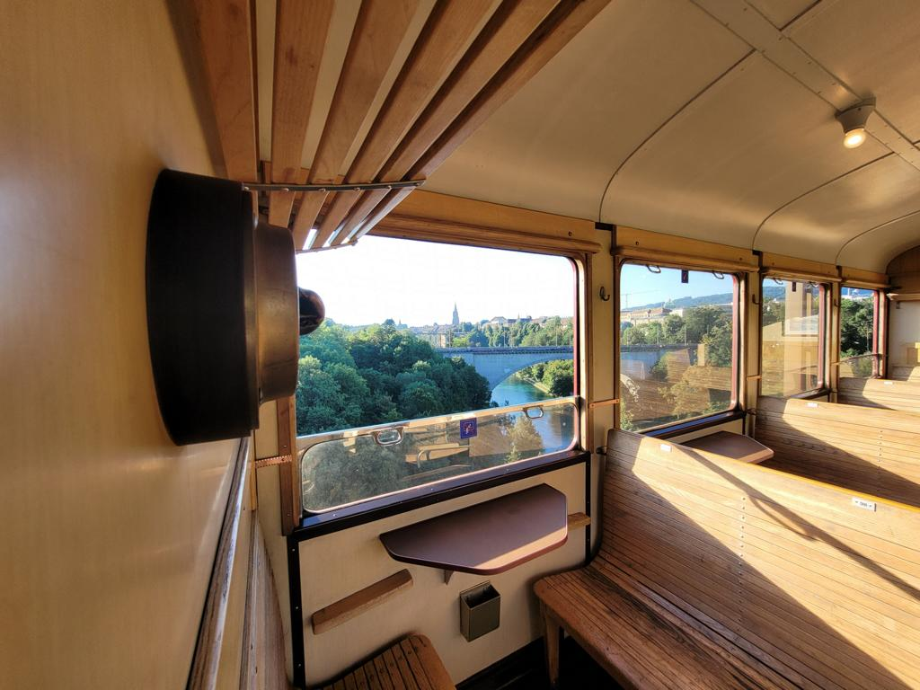 Im “Schmucktruckli” geniessen bis zu 68 Personen den “Komfort” der einstigen 3. Klasse mit Senkfenstern und originalen Holzbänken. Auf den kleinen Ablagetischen lässt sich wie früher auf den Reisen ein kleines Picknick ausbreiten. Der Wagen ist zusätzlich mit einer Musikanlage ausgerüstet worden.